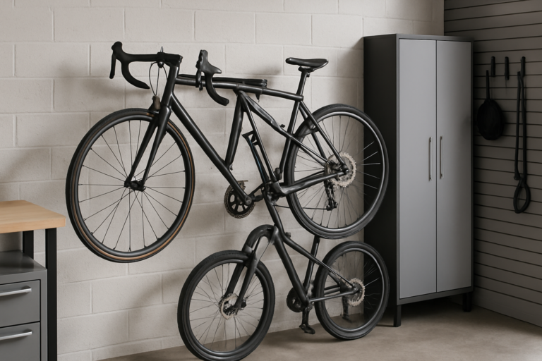 Ceiling storage works well when you have bikes you don’t ride daily, like kids’ bikes they’ve outgrown but you’re keeping for younger siblings, or seasonal bikes you only use part of the year. The lifting and lowering process adds enough friction that you won’t want to do it before every ride.